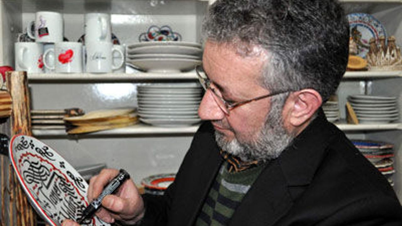 ustası Ekrem Adıgüzel, Enerji ve Tabii Kaynaklar Bakanı Taner Yıldız'ın iş yerlerini ziyaret ettiğini belirterek, ''Bakan Bey haber vermeden ziyaretimize geldi ve dolayısıyla biz de hazırlık yapamadığımız için kendisine ziyareti anısına bir hediye veremedik. Ancak şimdi porselen tabak üzerine Taner Bey'in adını hat sanatıyla yazdım. Bir dahaki gelişlerinde inşallah hediyemizi Sayın Bakana vereceğiz'' diye konuştu.