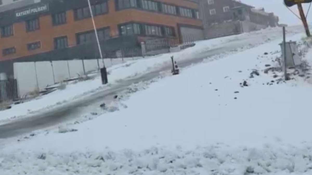 Kayseri Erciyes Polisevi çevresindeki yollar karla kaplanmış durumda. Yağış etkisini şehir yakınlarında da gösteriyor.