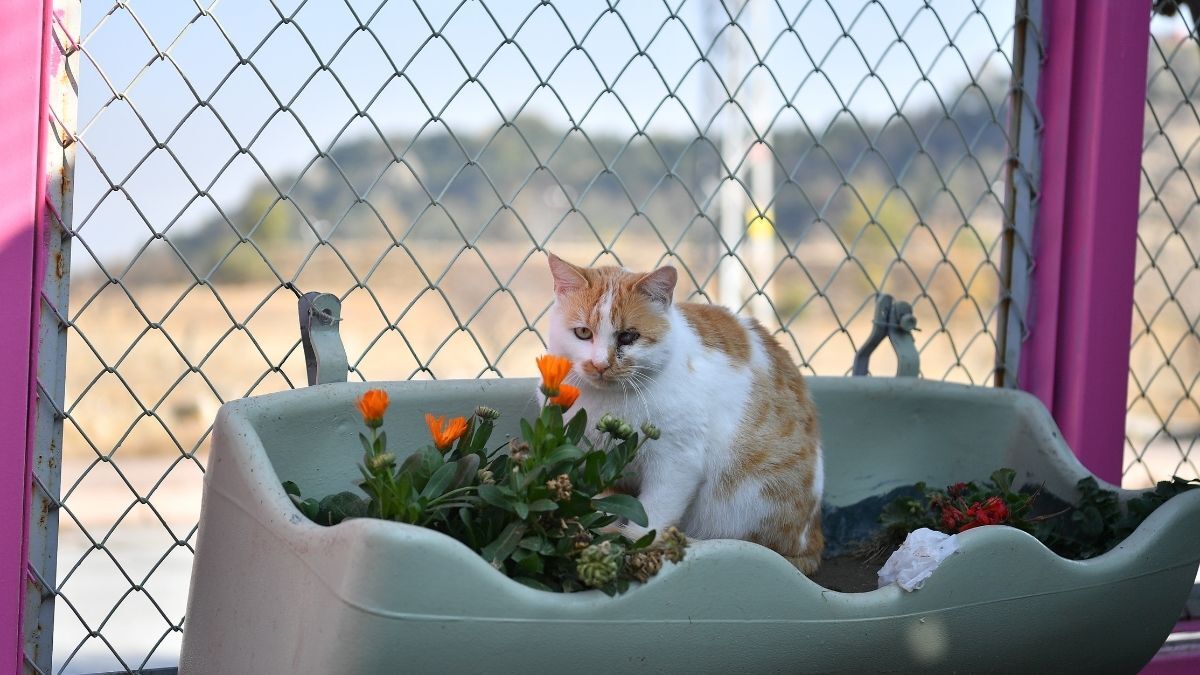 Açık yaşam alanında kedilerin özgürce dolaştığı görüntüler, merkezin doğal ve ferah bir ortam sunduğunu gösteriyor. Kediler burada hem sosyalleşiyor hem de hareket ederek sağlıklarını koruyor.