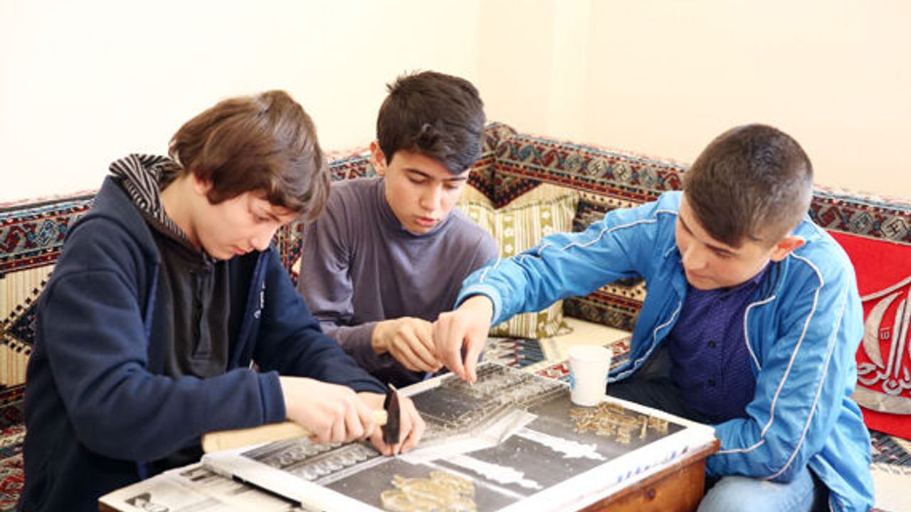 Genç KAYMEK Filografi Eğitmeni Adem Yıldız, derslerden arta kalan zamanlarda öğrencilere filografi sanatını öğrettiklerini belirterek Kutlu Doğum Haftası'nda sergi açmak istediklerini söyledi. Yoğun derslerle bunalan öğrencilerin hem el becerilerini geliştirdiklerini hem de onlara sanat öğrettiklerini ifade eden Yıldız, genelde hat çalışmaları yaptırdıklarını belirtti.
