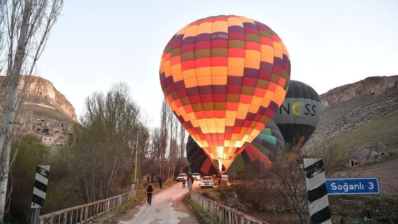 Çalışmalarla birlikte farklı bir görünüme bürünen Kayseri'nin Yeşilhisar ilçesindeki Soğanlı Vadisi'ne gelen turist sayısı her geçen gün artarken, misafirler sıcak hava balonlarıyla kültürel mirası havadan izleme imkanı buluyor. Soğanlı Vadisi'ne gelen Güney Afrikalı turist kafilesi, şarkılar söyleyerek gönüllerince eğlendi. Şarkılara kendilerini kaptıran turistler, coşkuyla dans ederek Soğanlı'da unutulmaz bir gün yaşadı.