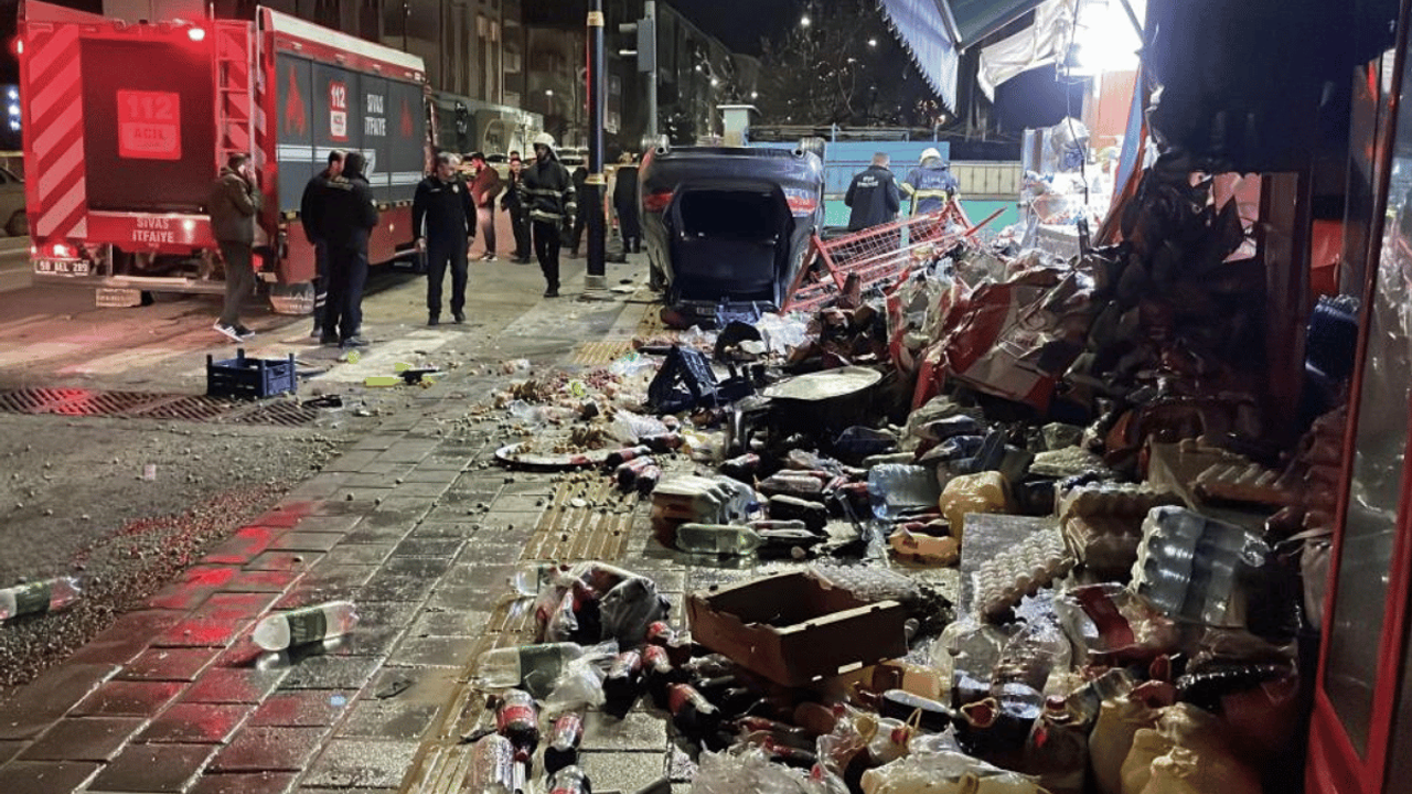 Sivas’ta bir otomobil sürücüsünün kontrolünden çıkarak market ve kuruyemiş dükkanına çarptı. Otomobil sürücüsü kazayı yara almadan atlattı.