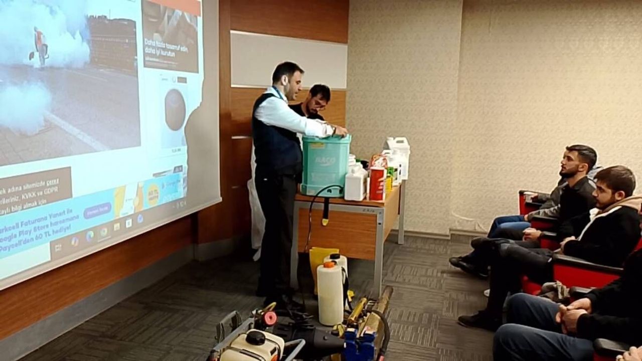 İl Sağlık Müdürlüğü koordinasyonunda düzenlenen Biyosidal Ürün Uygulayıcı Sertifika Eğitiminde Talas Belediyesi Veteriner İşleri Müdürlüğü, bu kez öğrenen değil, öğreten tarafta yer aldı.