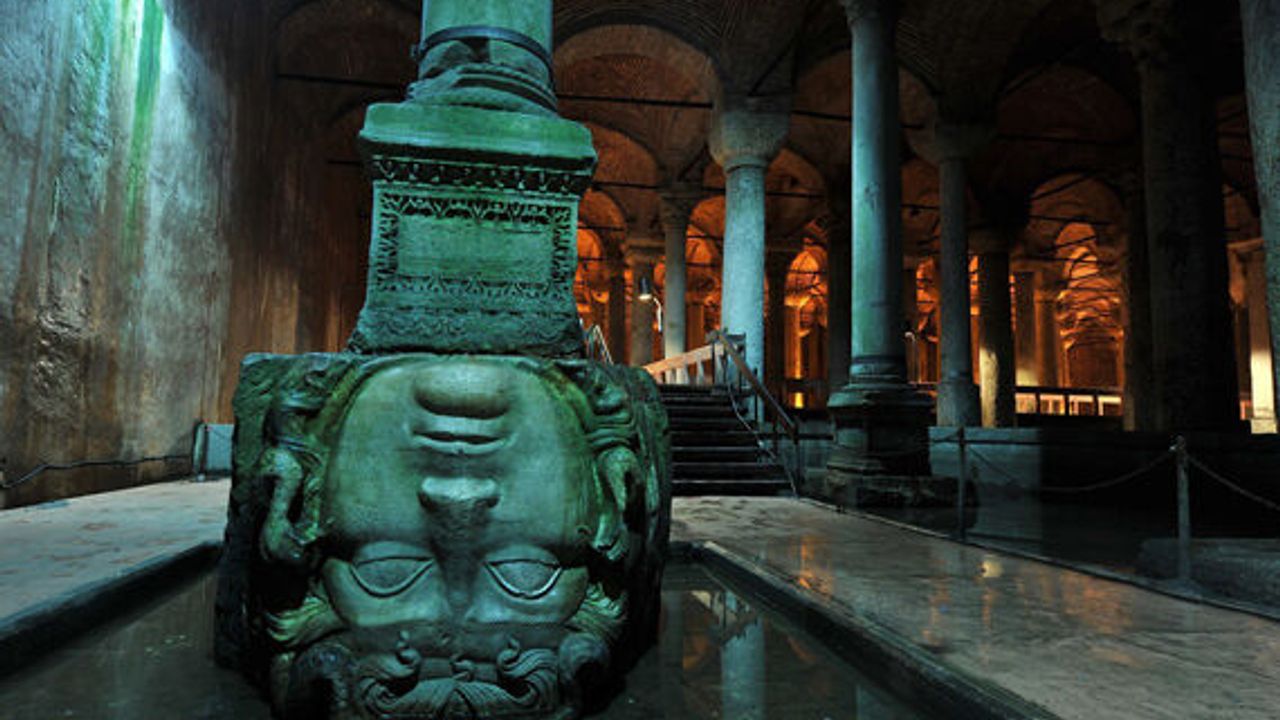 Roma Çağı heykel sanatının örneklerinden olan bu başların hangi yapıdan alınarak sarnıca konulduğu belli olmamakla beraber Medusa'yla ilgili mitolojiye dayandırılan birçok söylenti bu yapıyı daha da gizemli kılıyor.